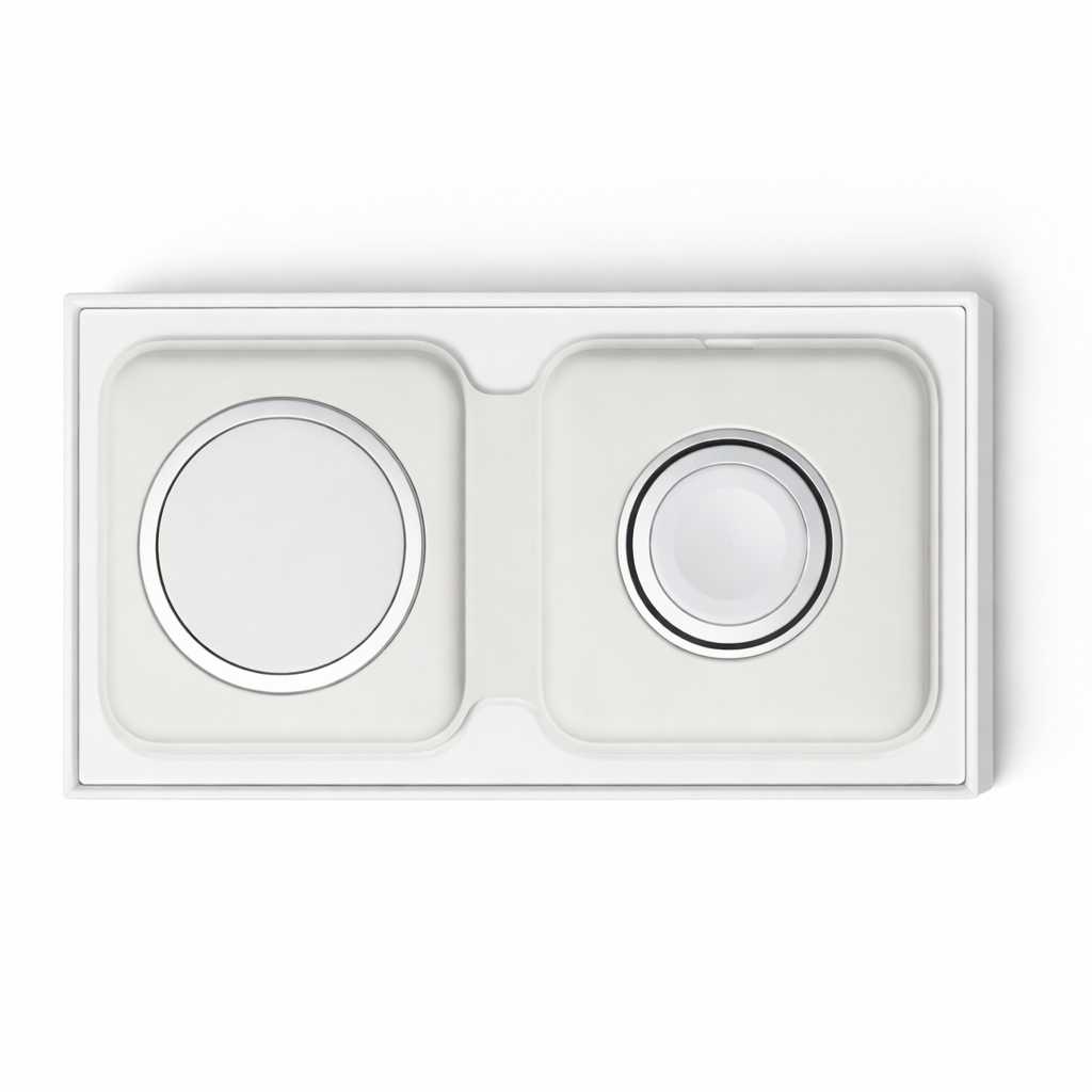 Das Apple MagSafe Duo Charger Modell A2458 ist ein hochwertiges, magnetisches kabelloses Ladegerät von Apple, das speziell entwickelt wurde, um iPhone, Apple Watch und weitere Qi-fähige Geräte bequem gleichzeitig zu laden. Dank der integrierten MagSafe-Technologie sitzt dein iPhone beim Laden automatisch zentriert und optimal ausgerichtet auf der Ladefläche, was eine stabile und effiziente Energieübertragung gewährleistet.